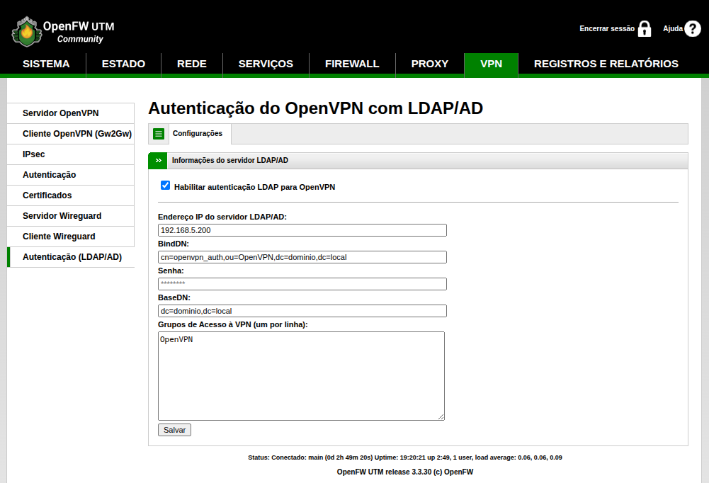 O OpenVPN Auth é o Addon responsável por autenticar o servidor OpenVPN do OpenFW UTM Community em uma base de autenticação Active Directory (AD).